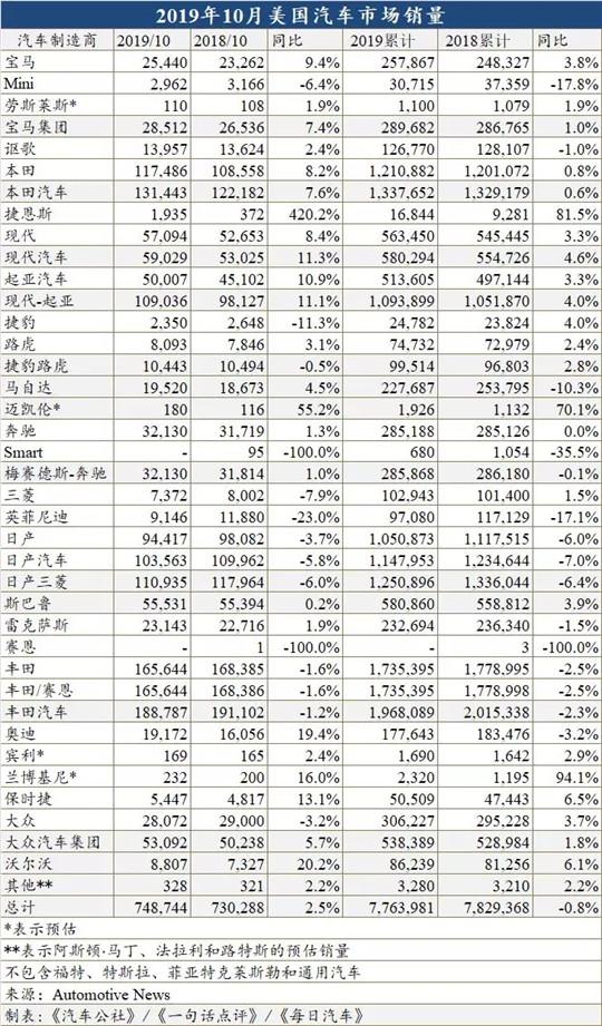 根据Autodate统计数据,10月份美国市场可统计范围内的轻型车销量为748,744辆,同比增长2.5%