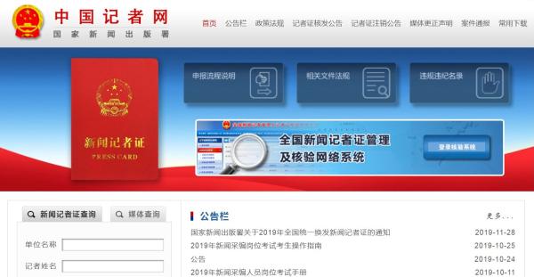 澎湃新闻(www.thepaper.cn)注意到,相较此前首页页面下设的“新闻记者查询/媒体查询”“公告栏”“记者证注销公告”“记者证核发公告”“常用下载”5个栏目,新版中国记者网首页又增设了“政策法规”“媒体更正声明”“案件通报”3个栏目。