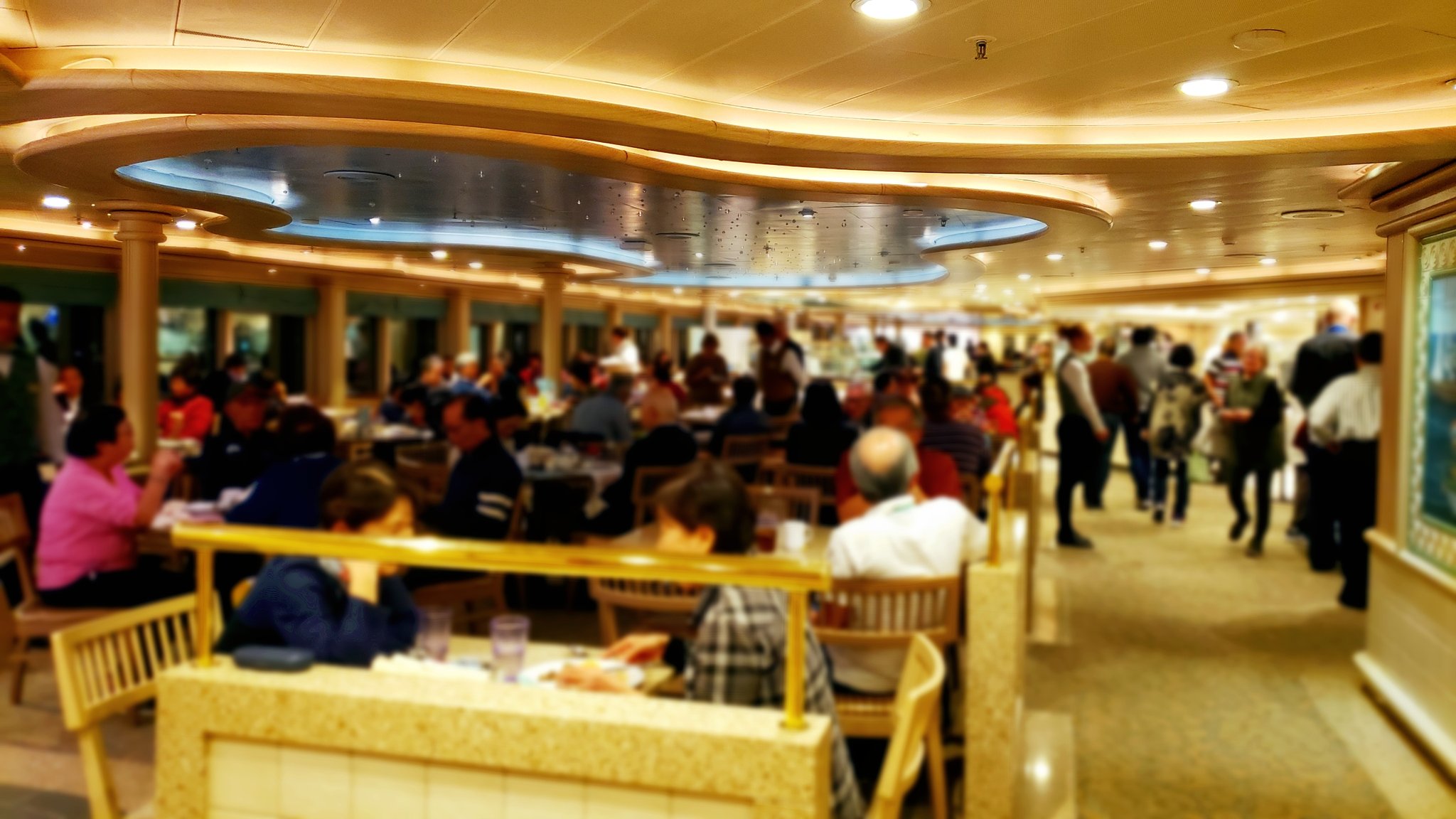 “主大厅附近的休息室,举行了卡拉 ok 大会。每天都在某个休息室举行,特别受欢迎。大家都很放松。”