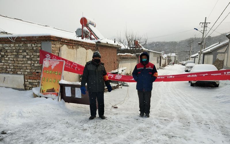 大雪中,值守岗位的村民。延庆区四海镇政府供图