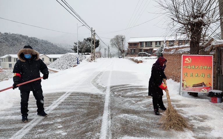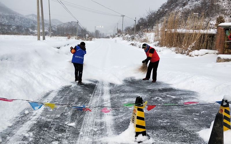 天刚蒙蒙亮,各村村民就拿着扫帚走上街头,开始扫雪。延庆区四海镇政府供图