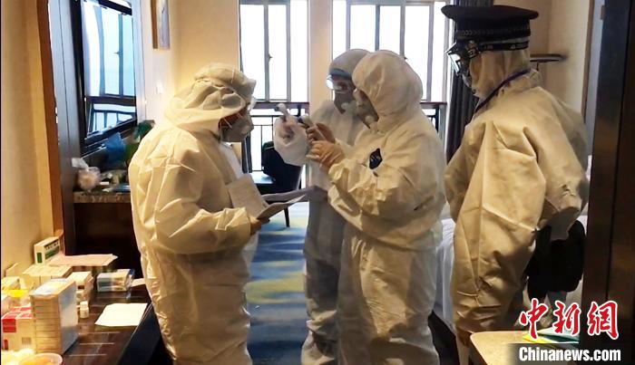 “大堂内,大家穿好隔离防护服等着疫情调查处置组同事把人员接来;询问登记基本信息、测量体温、办理入住,引导上楼,一切都很正常的进行。”胡钊钊回忆起第一天的工作,他笑着说:“当时可能很紧张,没经验怕做不好这些,就没时间去思考害不害怕了。”