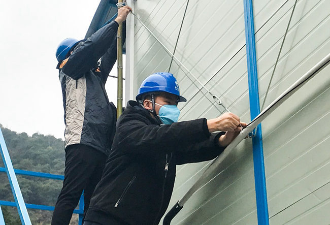 电信工作人员在永泰闽投抽水蓄能电站工地安装“天翼看家”设备