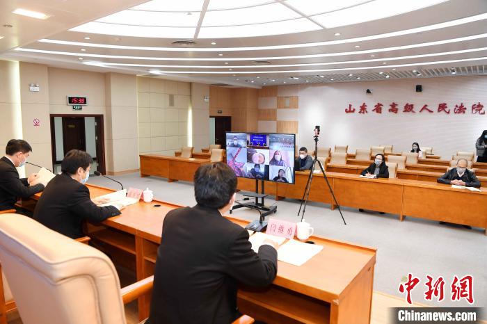 2月18日下午,山东省高级人民法院首次通过网络视频形式召开新闻发布会。 韩国健 摄