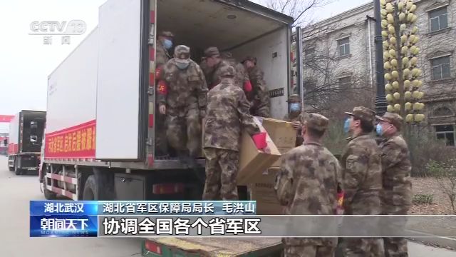 湖北省军区保障局局长 毛洪山:充分发挥国防动员一体联动机制,协调全国各个省军区,向湖北捐赠各类物资,通过我们湖北省军区与一线医院搞好精准对接,在第一时间将这些物资送往一线医院。