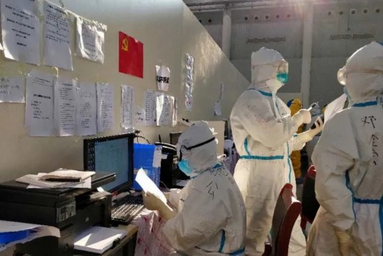 2月21日下午,汉阳方舱医院护士站内,来自四川的医护人员正在登记患者信息。四川日报社记者 杨树 摄