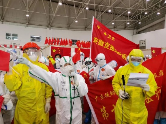 2月23日16时许,一首“让世界充满爱”的合唱响彻武汉客厅方舱医院病区A舱,拉开了当天下午举行的“同舟共济,大爱永存”主题活动的序幕。