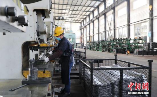 2月26日,河北省廊坊市香河县五百户镇,港龙公司的工人正在用机床生产车架。河北省按照坚持精准施策,根据风险等级实施差异化防控策略,有力有序组织企业复工复产。中新社记者 宋敏涛 摄