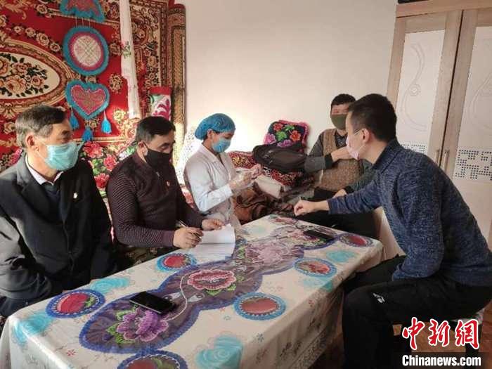 人保财险阿勒泰分公司驻富蕴县库尔特乡吉拉特村“访惠聚”驻村工作队对全村372户,1511人进行电话摸排,先后开展七轮体温检测。 新疆保险行业协会供图