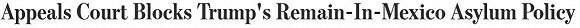 该法院裁定,这一政策与联邦移民法和美国法律不一致,美国的国际条约有义务不将外国人送回他们的生命或自由因其种族、宗教、国籍、政治或社会关系而受到威胁的国家。目前,有6万多名寻求庇护的移民已经被送回墨西哥,等待美国法庭的判决。