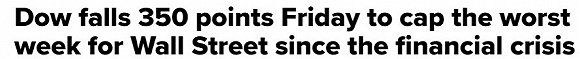 本周,美股均创下自2008年10月以来最大单周跌幅。道琼斯指数跌幅超12%,下跌3500点。标普500指数下跌11.5%。纳斯达克指数下跌10.5%,较历史高点低近13%。