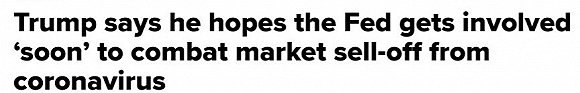 特朗普并没有明确呼吁降息,但表示,因市场对新冠病毒可能导致经济急剧放缓的担忧增长,美国央行应效仿全球同行投入大量资金的做法。