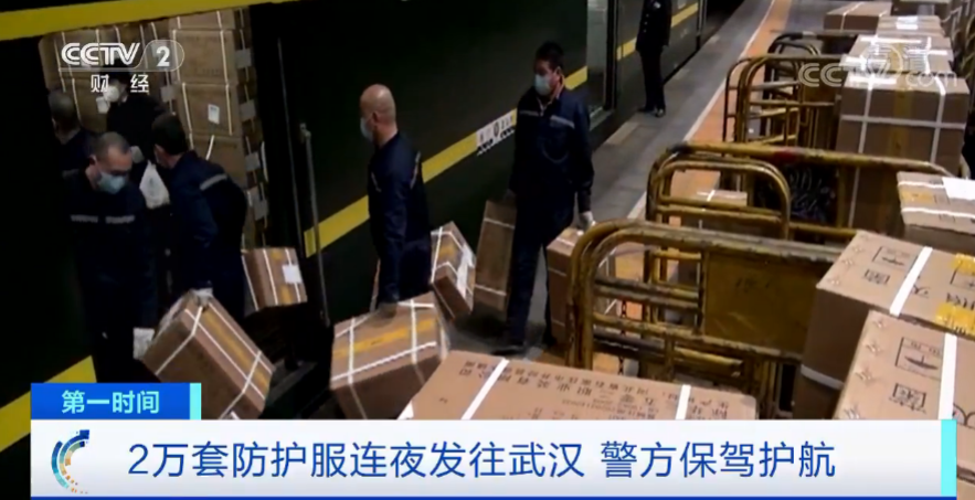 3月4日晚,共计800箱2万套防护服的防疫物资,搭乘Z285次列车,由北京西站运往武汉。为了保障本次物资顺利运送,北京西站联合铁路警方,提前开辟绿色通道,仅用时30分钟就完成全部装车任务,确保物资运输顺畅。