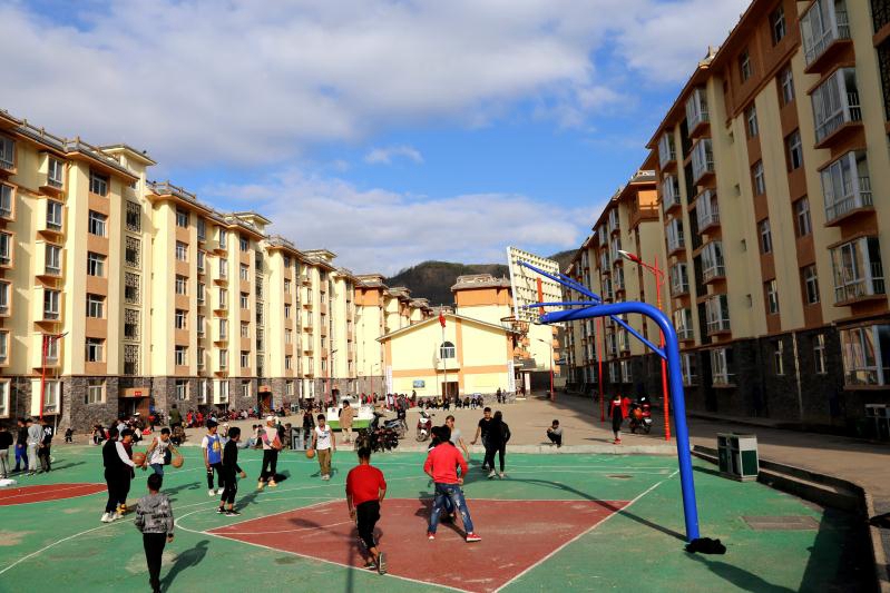 央广网昭觉3月11日消息(记者韩民权 通讯员阿克鸠射)“库莫队加油!特口甲谷队雄起……”3月10日下午,蓝天白云。在离昭觉县城只有2公里的城北乡普提易地扶贫移民搬迁集中安置点活动场上,早已入住在此的库莫乡和特口甲谷乡的村民们举行了一场精彩的篮球赛。