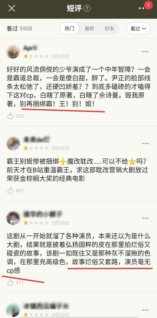 直至2018年暑假播出的《延禧攻略》才成功让他翻了身,这部剧还是得益于女主是“黑莲花”人设和剧情加成,节奏把控得好,因此就成功出了圈。他其实好懂网友的心理需求,非常擅长营销和制作,做制片他非常在行,编剧就很一般了。这不,他当制片人的新作《鬓边不是海棠红》上线前夕,就帮张檬说话引发全网争议,他发的小文章看似是在高端黑张檬,实质上是在洗白张檬。在《鬓边不是海棠红》上线后收获差评以及豆瓣上众多网友的一星评分,他又发文说是肖战粉丝故意给他的双男主剧刷一星的,让网友恶意揣测说是怕影响了《陈情令》作为双男主评分最高的网剧。于正的这篇小文章,让很多肖战的“职业黑子”又有了一个理由黑肖战。