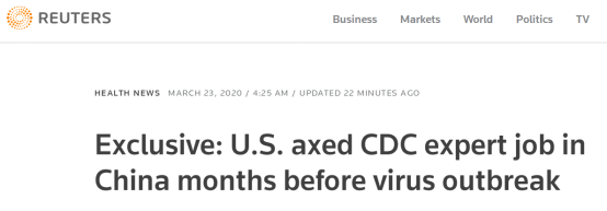 对此,美国疾控中心在向路透社发的一份声明中称,取消这一顾问职位并不妨碍华盛顿获取信息的能力,“与(美国)疾控中心没有更早了解到中国(出现)的病例完全没有关系”。