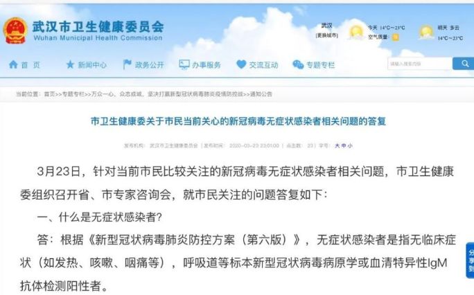 无症状感染者为何不纳入确诊病例?武汉卫健委答复