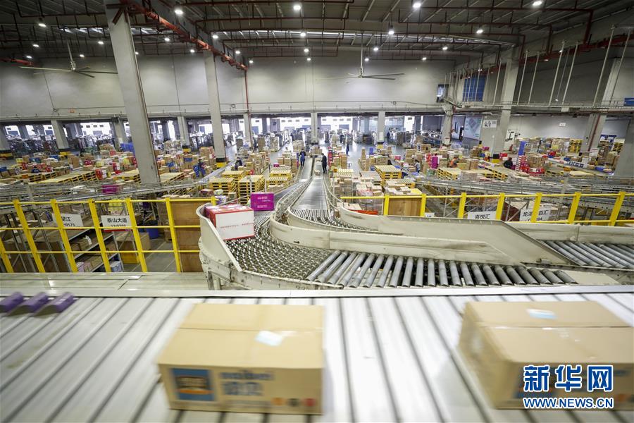 3月16日,在重庆国际物流枢纽园区的永辉物流配送中心常温库,自动化分拣系统分发永辉超市各门店所需的货品。新华社发 (黄伟 摄)