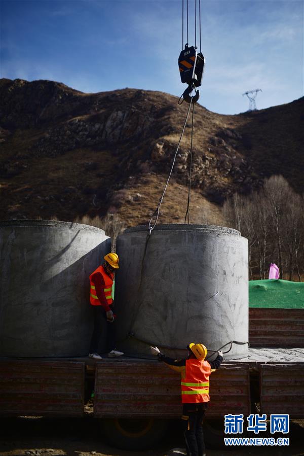 3月11日,施工人员在位于青海省的“引大济湟”工程西干渠项目现场施工。新华社记者 吴刚 摄
