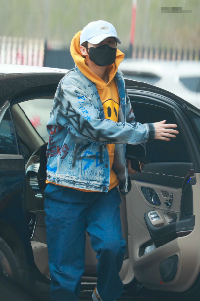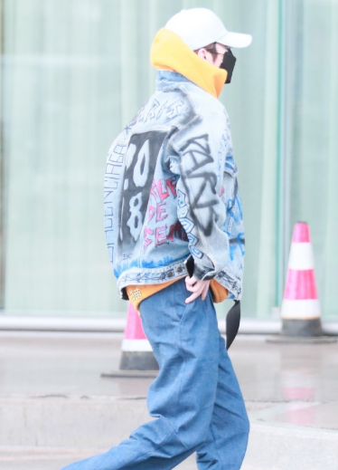 再看鹿晗今日份的穿搭,涂鸦牛仔外套黄色卫衣搭配蓝色长裤,头戴棒球帽的他,整个人酷帅十足。