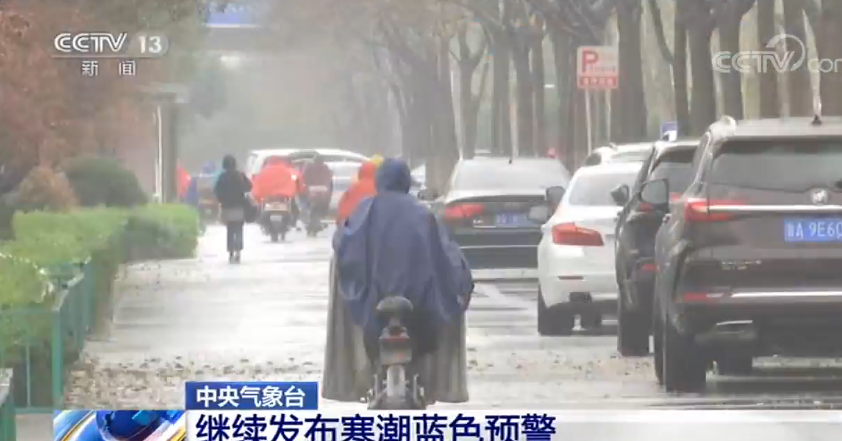 央视网消息:今明两天,冷空气对我国的影响仍会继续,降温重心转移到南方,江南、华南多地气温将下降12℃以上,伴随着降雨天气湿冷,中央气象台继续发布寒潮蓝色预警。