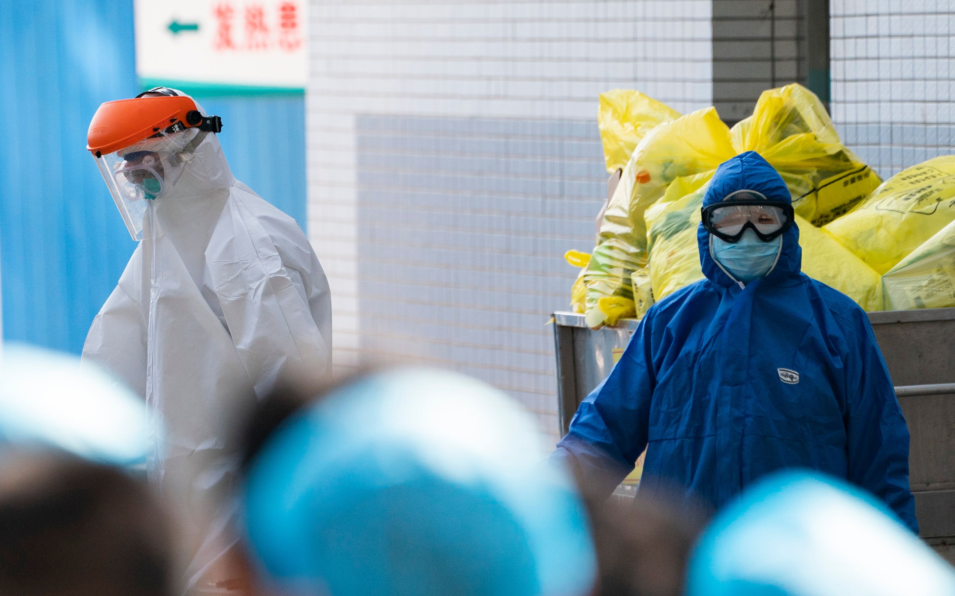 在武汉市第一医院,每张病床旁都放着一个印有“医疗废物”标记的黄色垃圾桶。使用过的医疗用品、患者产生的生活垃圾等都会投入其中。