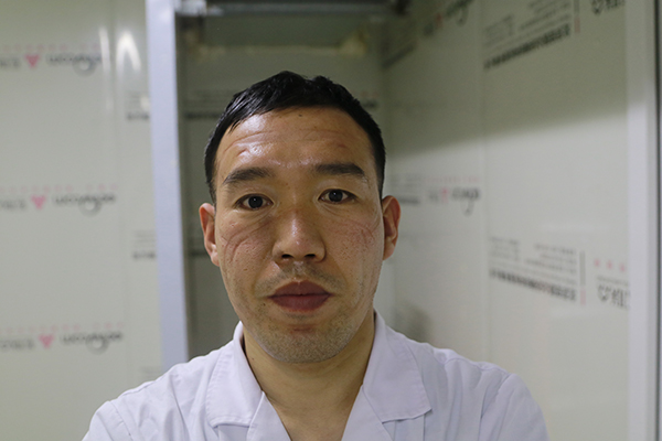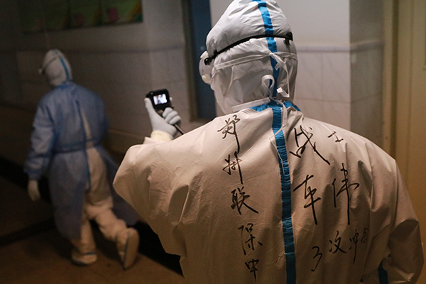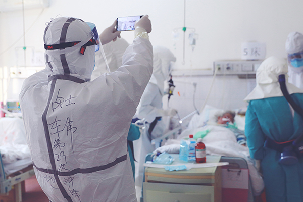 车伟在红区记录忙碌的一线医护人员(王震 摄)