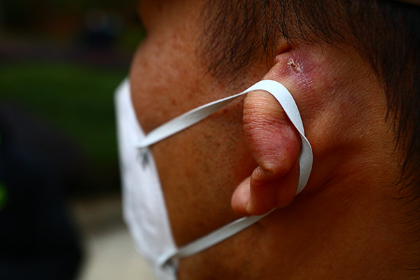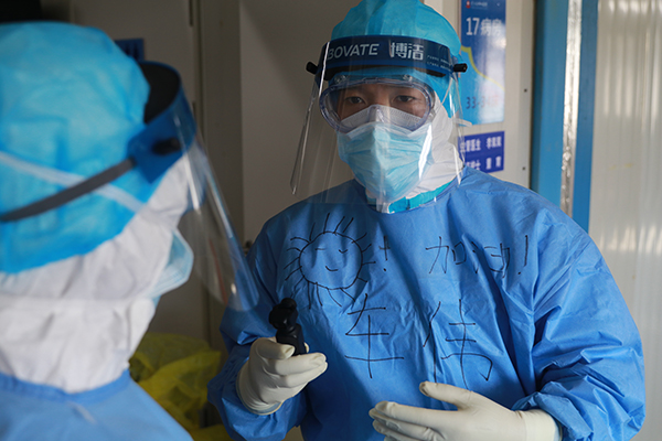 职责赐予车伟和医护人员同款的最美印记(王震 摄)