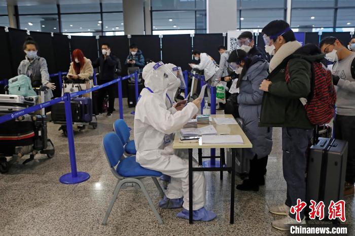 全副武装的入境人员陆续抵达上海浦东国际机场。 殷立勤 摄