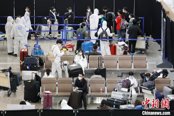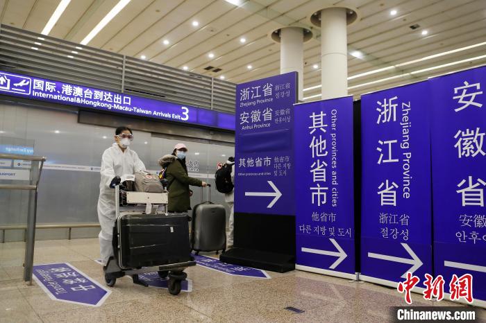 入境人员陆续抵达上海浦东国际机场。 殷立勤 摄