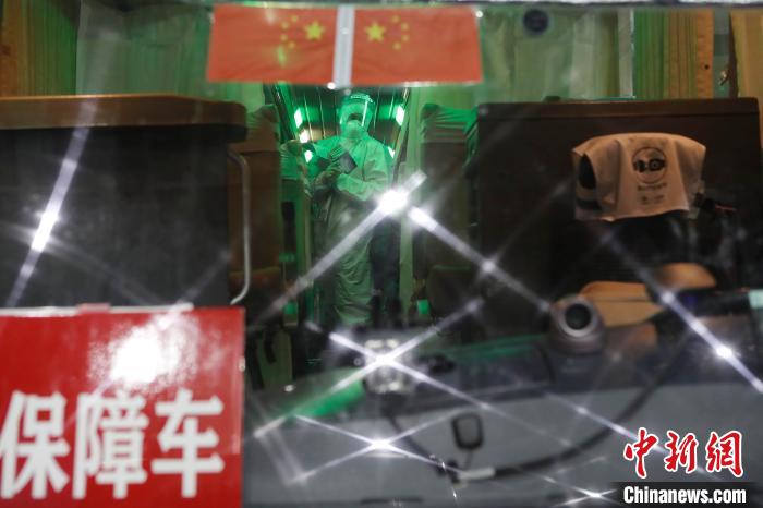 浦东机场交通保障人员正在应急保障车上,对入境人员再次进行信息核查。 殷立勤 摄