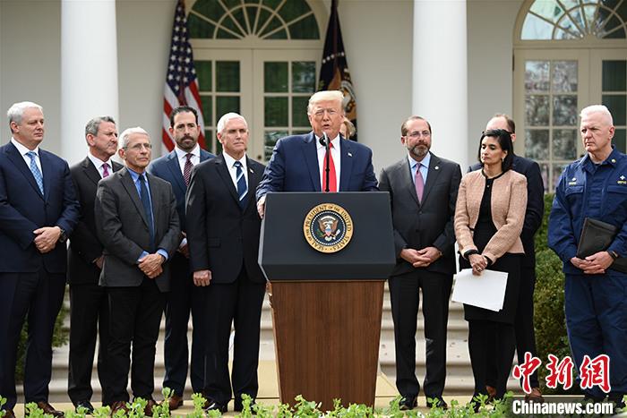 当地时间3月13日,美国总统特朗普在白宫宣布“国家紧急状态”,应对新冠肺炎疫情。 中新社记者 陈孟统 摄