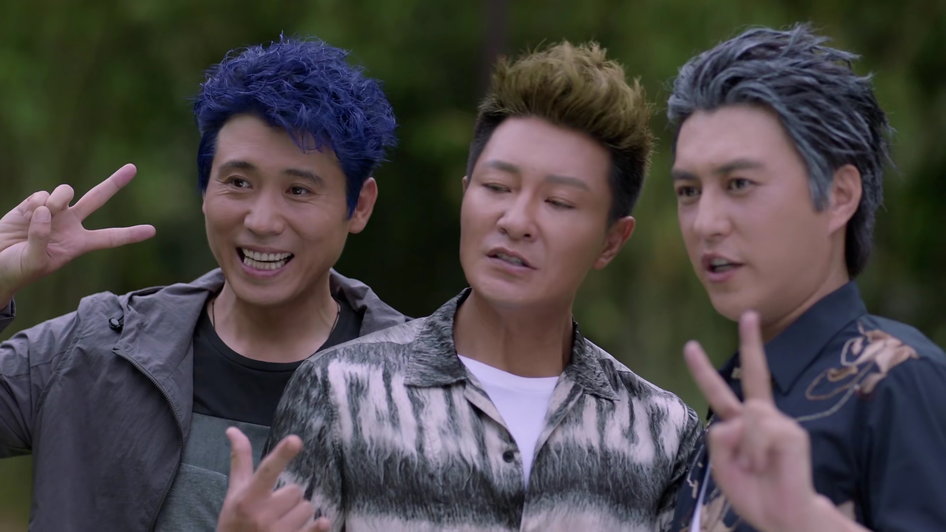 李乃文:染蓝色头发是剧本的设计,因为三个人的姓氏都是颜色,所以蓝天愚就染的蓝色,黄九恒染的黄色,白志勇染的就是白色。