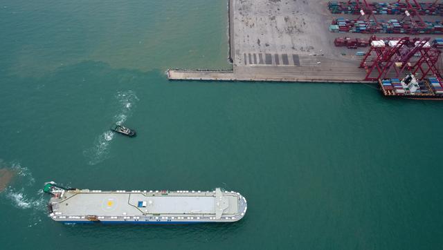 滚装货船驶入海口秀英港。新华社记者 杨冠宇 摄