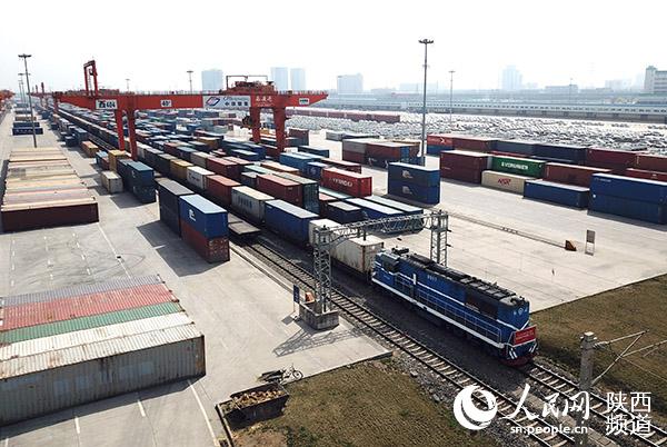 在西安港,装卸好货物的中欧班列蓄势待发。疫情期间,中铁西安局通过积极组织运输货源、开通务工专线等形式全力保障复工复产,助力“三个经济”发展。中铁西安局供图