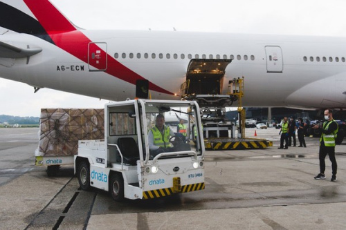 图为从中国购买的新冠检测试纸4月1日运抵巴西。(南美侨报网)