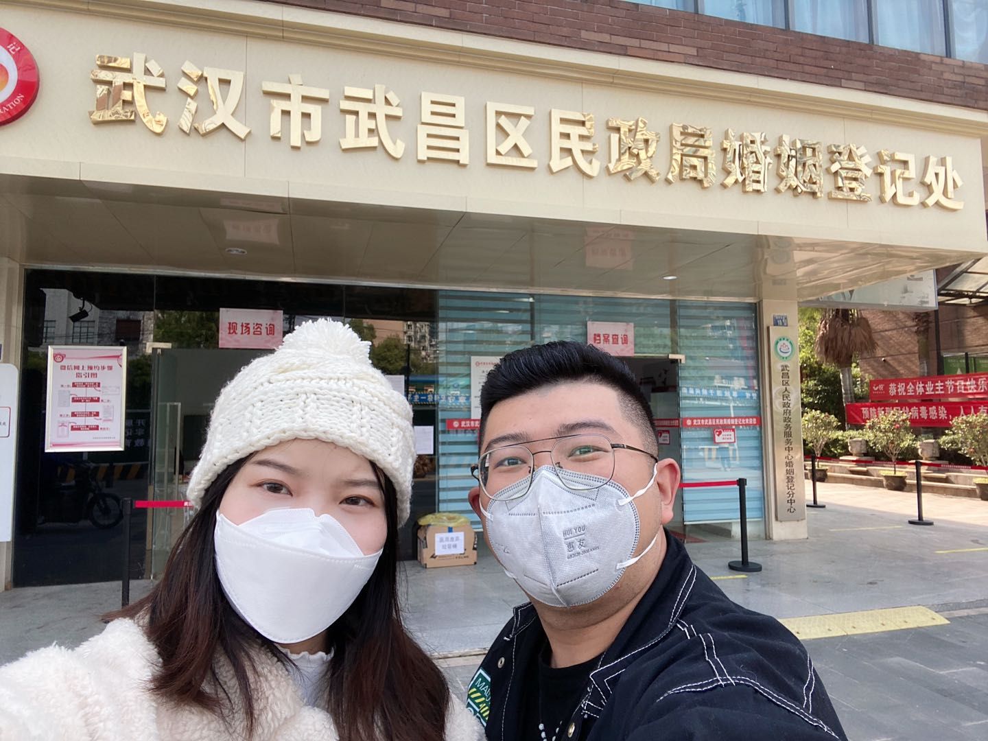 当天大约上午10点我们办结,在登记处门口自拍了一张合影,我发了一条朋友圈,“今天,武汉解封了!今天,我们终于领证了!今天,儿子都十九天了!”
