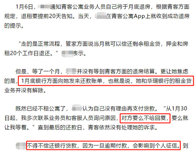 就是在已经实际退房后,租金贷并没有终止,而是租客继续给金融机构还钱。可想而知,如果那些大中介公司倒闭、卷跑跑路、公司爆雷,会对社会产生多大的动荡。