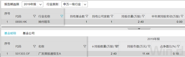 同时,2019年基金年报显示,持有港股神州租车的只有一只被动型股票基金,广发港股通恒生A仅持有2.4万股,占基金净值比例只有0.18%,影响甚微。