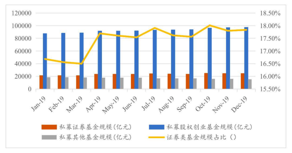 2010年的时候,PE大爆发,中国共计43家企业赴美IPO。高回报加上货币宽松,大量资金涌入PE行业。截至2019年12月底,私募股权、创投基金的管理规模达到9.74万亿元,证券私募却只有2万多亿,和美国市场反了过来。