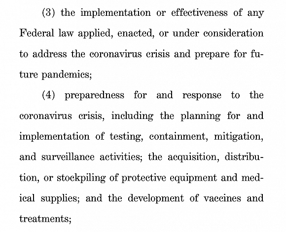 决议文件中提到,委员会在经过“全面调查”后,将就特朗普政府在援助资金使用上的效率、有效性、公正性和透明度,是否存在滥用和贪污资金的情况,危机的准备和应对,疫情的经济影响等内容提交一份调查报告。