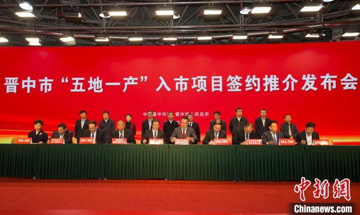 中新网晋中5月9日电 (杨杰英 张云)5月9日,山西省晋中市“五地一产”入市项目签约推介发布会在山西农产品交易中心新闻发布中心举行。本次签约推介项目共33个,其中签约项目11个,招商推介项目22个。