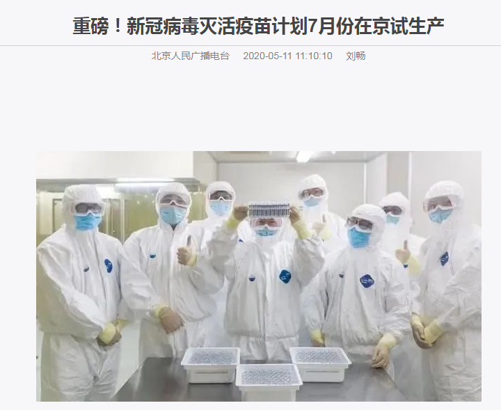 据北京人民广播电台,5月10日,记者在中国品牌日北京分会场现场采访了科兴控股董事长尹卫东,他表示,科兴研制的新冠病毒灭活疫苗已经完成一期二期临床试验,预计7月份试生产。目前,我国已经有四个团队的新冠疫苗获准临床试验,其中就包括科兴控股旗下北京科兴中维生物技术有限公司研制的疫苗“克尔来福”。
