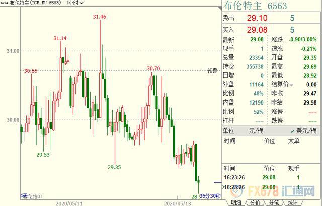 北京时间16:22,NYMEX原油期货下跌1.90%至25.83美元/桶;ICE布伦特原油期货下挫2.94%至29.10美元/桶,并刷新一周低位至28.92美元/桶。
