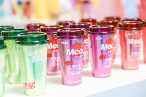 能有如此销售佳绩,与Meco蜜谷果汁茶内外兼优的产品实力密不可分。在当今“颜值即正义”的时代,Meco根据不同口味选择不同的清新配色,并率先启用杯装形态,每一款产品都是元气满满的神仙颜值,直击当代年轻人审美偏好。其大于10%的高果汁含量+高颜值的“双高”特性,也深得广大消费者的认同和喜爱。在代言人选择上,Meco蜜谷果汁茶牵手当红小生邓伦,有效将明星粉丝转换为品牌粉丝。更是先后合作了《极限挑战》《演员请就位》等热门综艺节目、与喜闻乐见的IP跨界合作推出限定版联名产品,在无形中给年轻人吃下一个又一个安利。