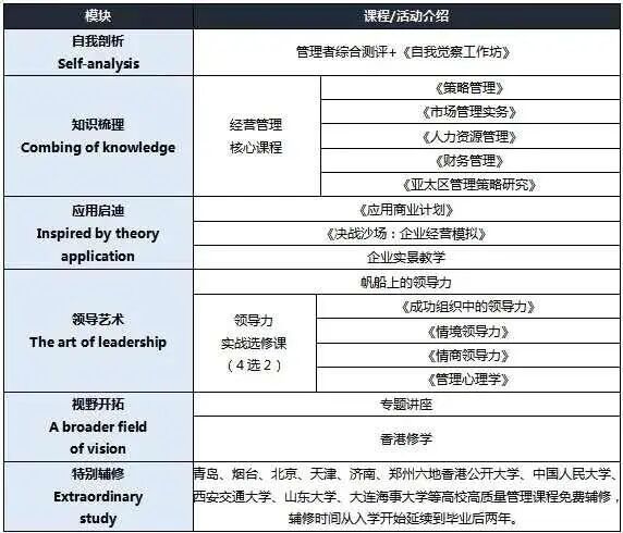 准EMBA课程配置
