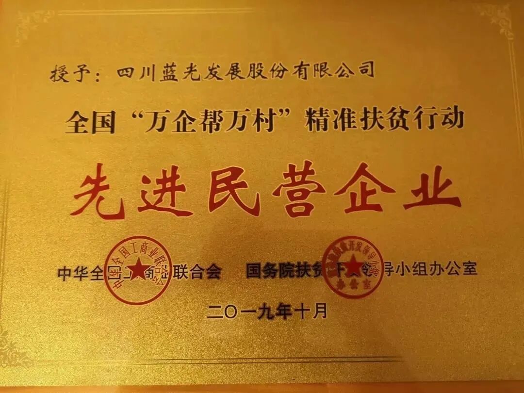 蓝光发展 在“决战脱贫攻坚”全国大会上介绍了3条经验 2020年4月24日,全国工商联通过网络视频互动交流方式,启动“政企面对面:决战脱贫攻坚”活动,联盟副理事长单位四川蓝光发展股份有限公司就民营企业克服疫情影响、参与脱贫攻坚情况作专题发言。 文章来源:蓝光发展微信公众号