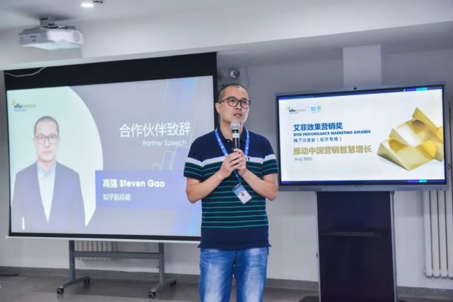 在徐总开场致辞结束后,邀请了知乎副总裁高强发表讲话。他表示:“知乎非常荣幸能够与艾菲共同举办效果营销沙龙,也感谢在座的客户与合作伙伴百忙之中前来参加。目前国内的营销奖项非常多,但真正面向效果营销、有深度解读的奖项很少,所以我认为艾菲效果营销奖的意义很大。知乎在效果营销领域一直不停的探索,知乎的内容可以深度影响用户的消费决策,产生水平信任,有效帮助企业增长和用户资产运营。希望接下来艾菲能够通过奖项为行业提供新的解决方案,促成更多的行业交流。”