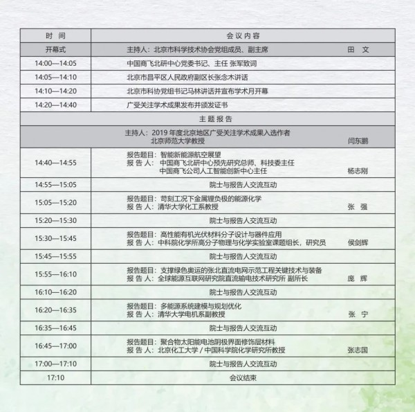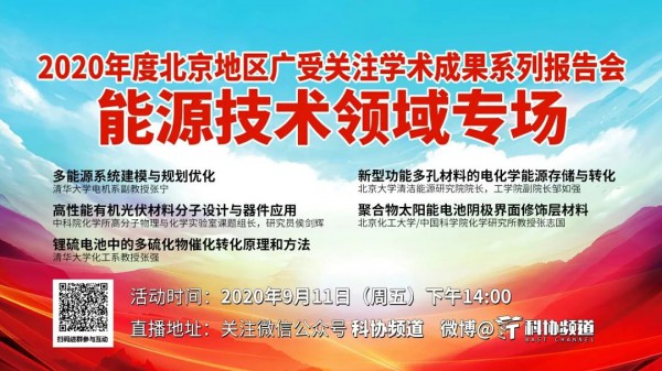 活动主题:2020年度北京地区广受关注学术成果系列报告会——能源技术领域专场