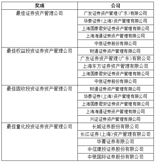 活动现场公布了金司南券商资管获奖名单,13家券商资管机构分获4项大奖——